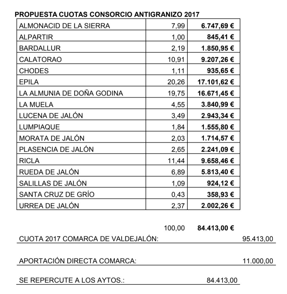 El Consorcio Antigranizo de Aragón está constituido actualmente por las comarcas de Valdejalón, Calatayud, Bajo Aragón – Caspe y Campo de Cariñena, además del Ayuntamiento de Cariñena, que les ofrece la sede central. Pero no siempre ha sido así. A principios de década, también estaban adheridas al consorcio las comarcas de Campo de Daroca, Bajo Aragón y el Jiloca, que lo han abandonado tras la presión de numerosos pueblos y agricultores que no ven con buenos ojos las prácticas del consorcio.