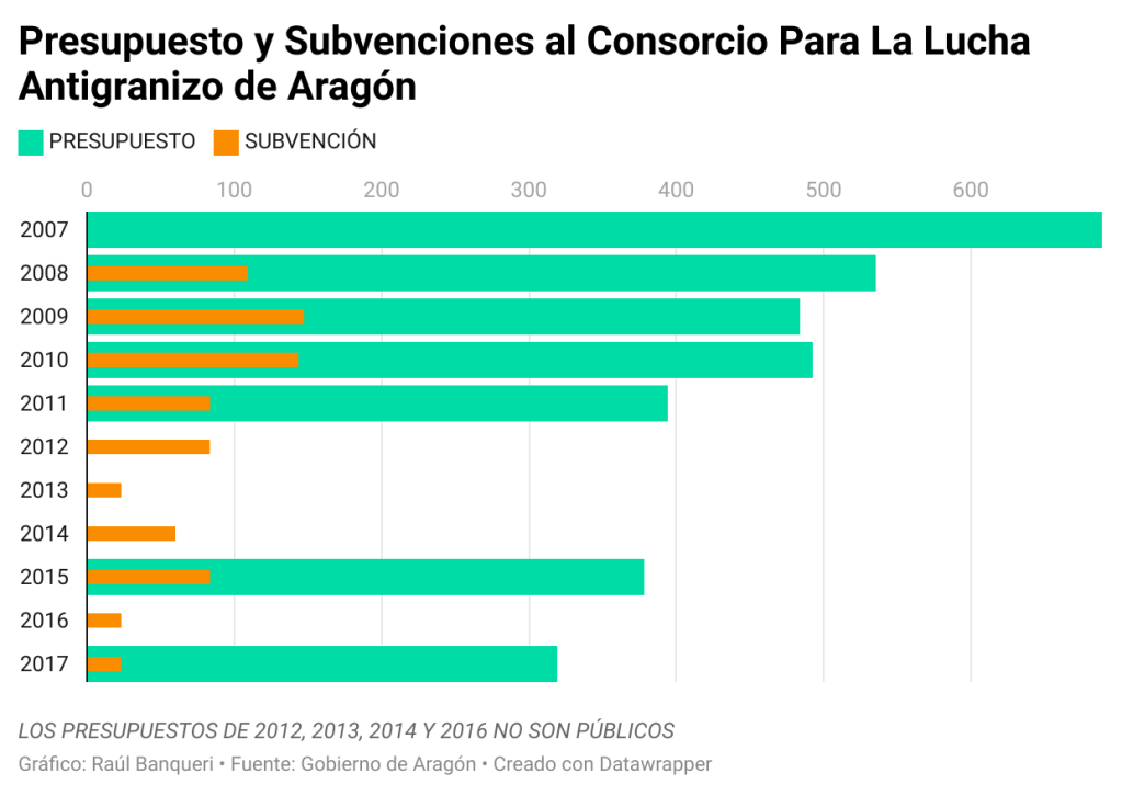 La lucha antigranizo supone un esfuerzo económico grande para las comarcas adscritas al consorcio. De hecho, la inversión anual de la asociación suele fluctuar entre los 300.000 y los 500.000 euros, sin resultados garantizados.
